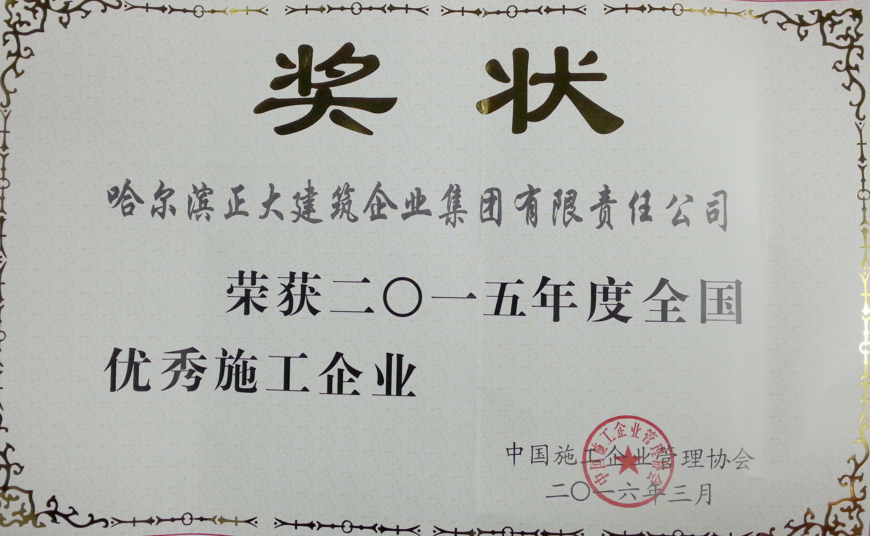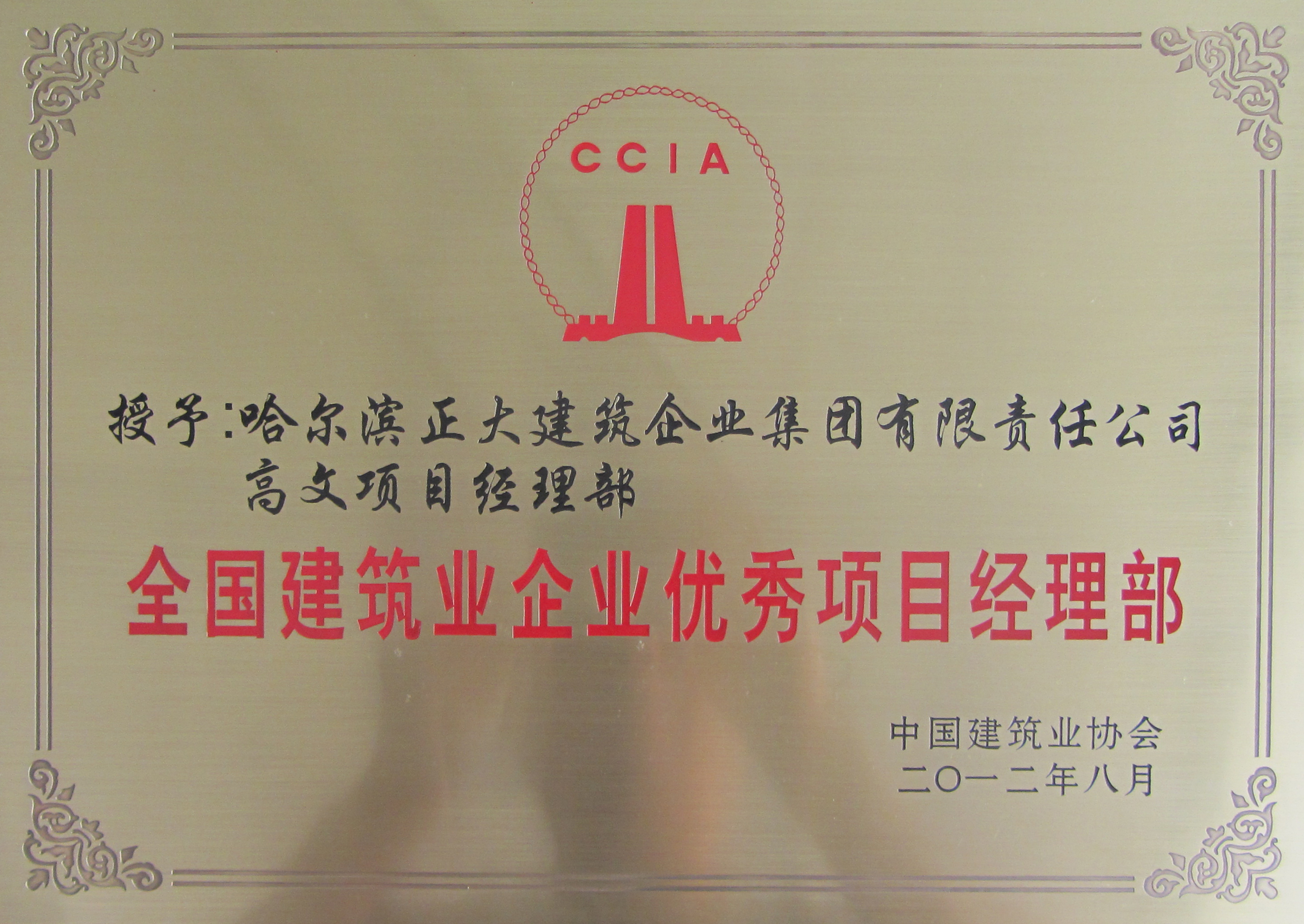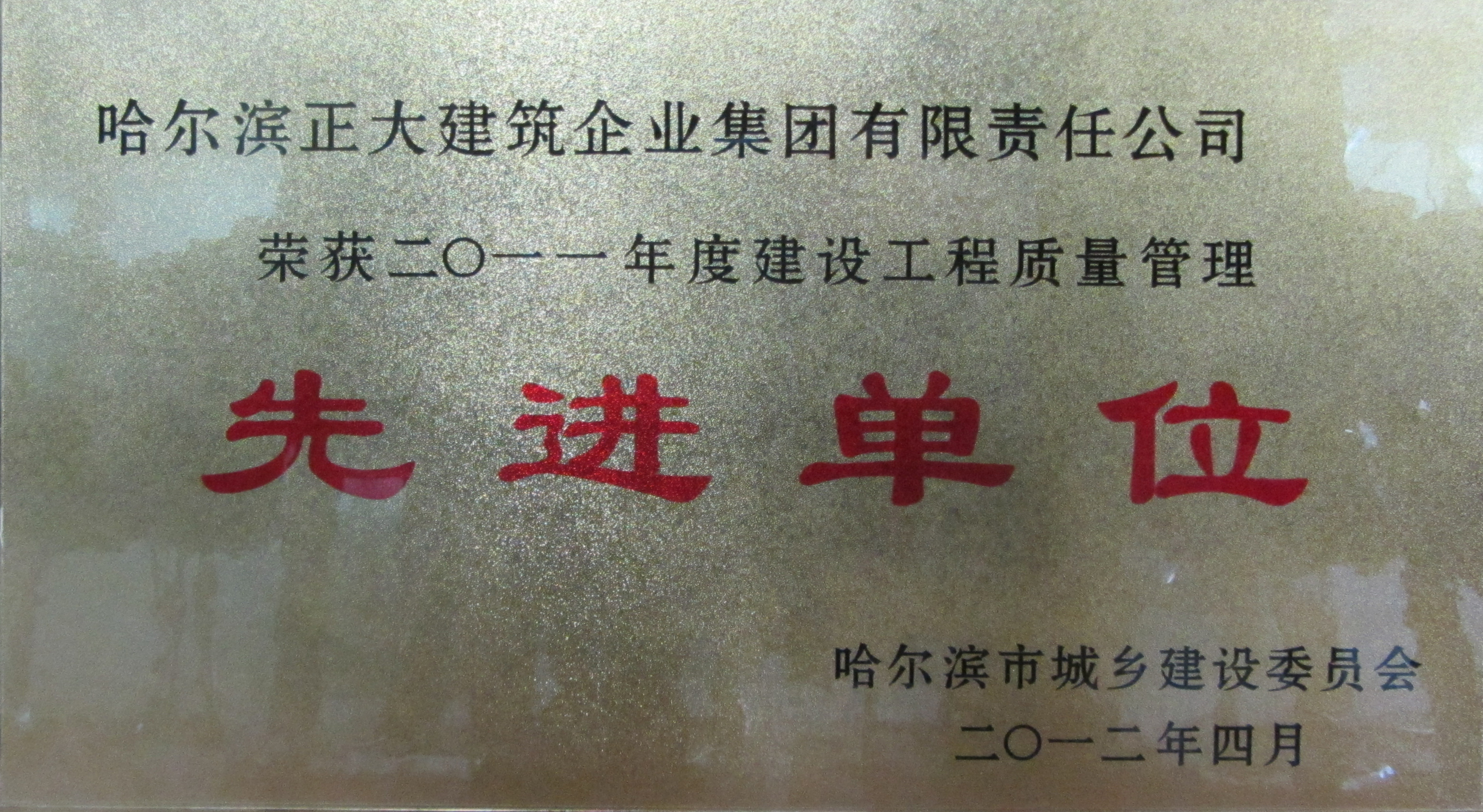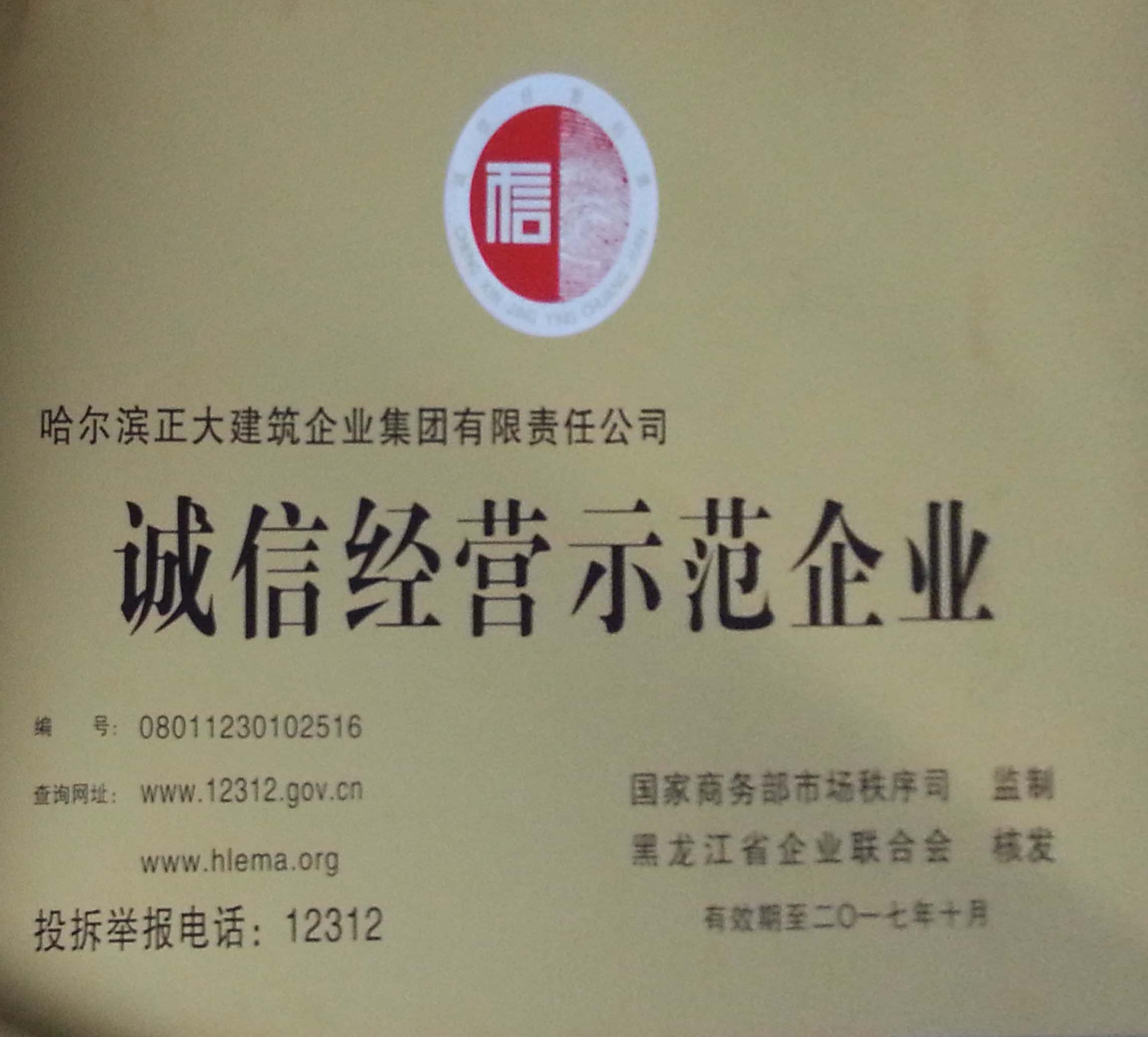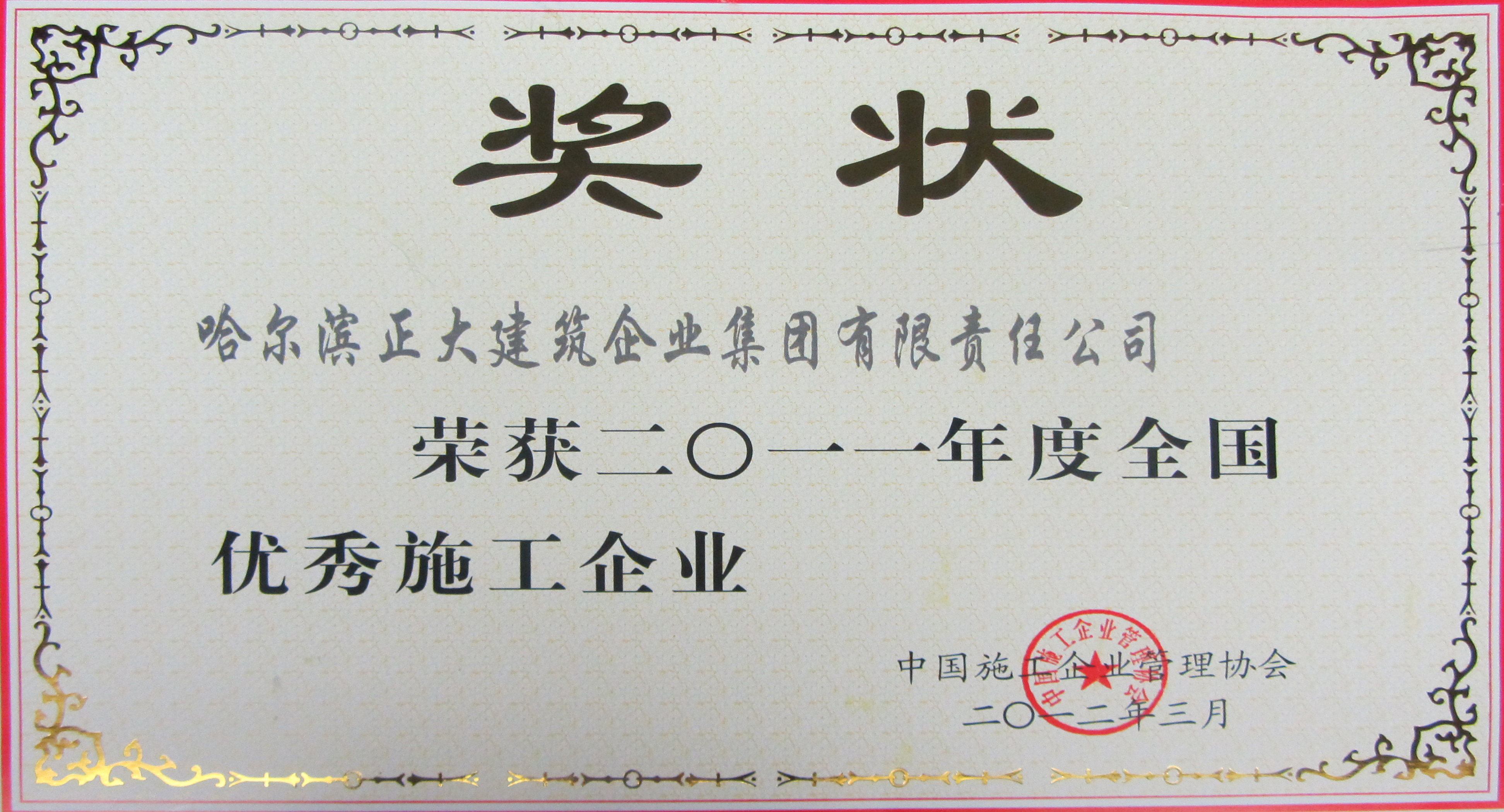 公司成立至今,先后被評為全國優(yōu)秀施工企業(yè)、全國用戶滿意施工企業(yè),全國首批建筑業(yè)誠信施工企業(yè),全國“安康杯”競賽優(yōu)勝企業(yè),全國工程建設(shè)質(zhì)量管理優(yōu)秀企業(yè)、中國建設(shè)系統(tǒng)企業(yè)信用信譽(yù)AAA級單位,并多次榮獲省、市“先進(jìn)單位”、“優(yōu)秀單位”、“重合同守信用單位”、“黑龍江省優(yōu)秀施工企業(yè)”、“黑龍江省用戶滿意施工企業(yè)”等光榮稱號。并連續(xù)獲得哈爾濱市質(zhì)量管理先進(jìn)單位、黑龍江省質(zhì)量管理先進(jìn)企業(yè)、黑龍江省質(zhì)量管理獎、黑龍江省“安康杯”優(yōu)勝企業(yè)等榮譽(yù)。并在建筑施工現(xiàn)場環(huán)保管理上創(chuàng)造了一項(xiàng)“中國企業(yè)新記錄”。